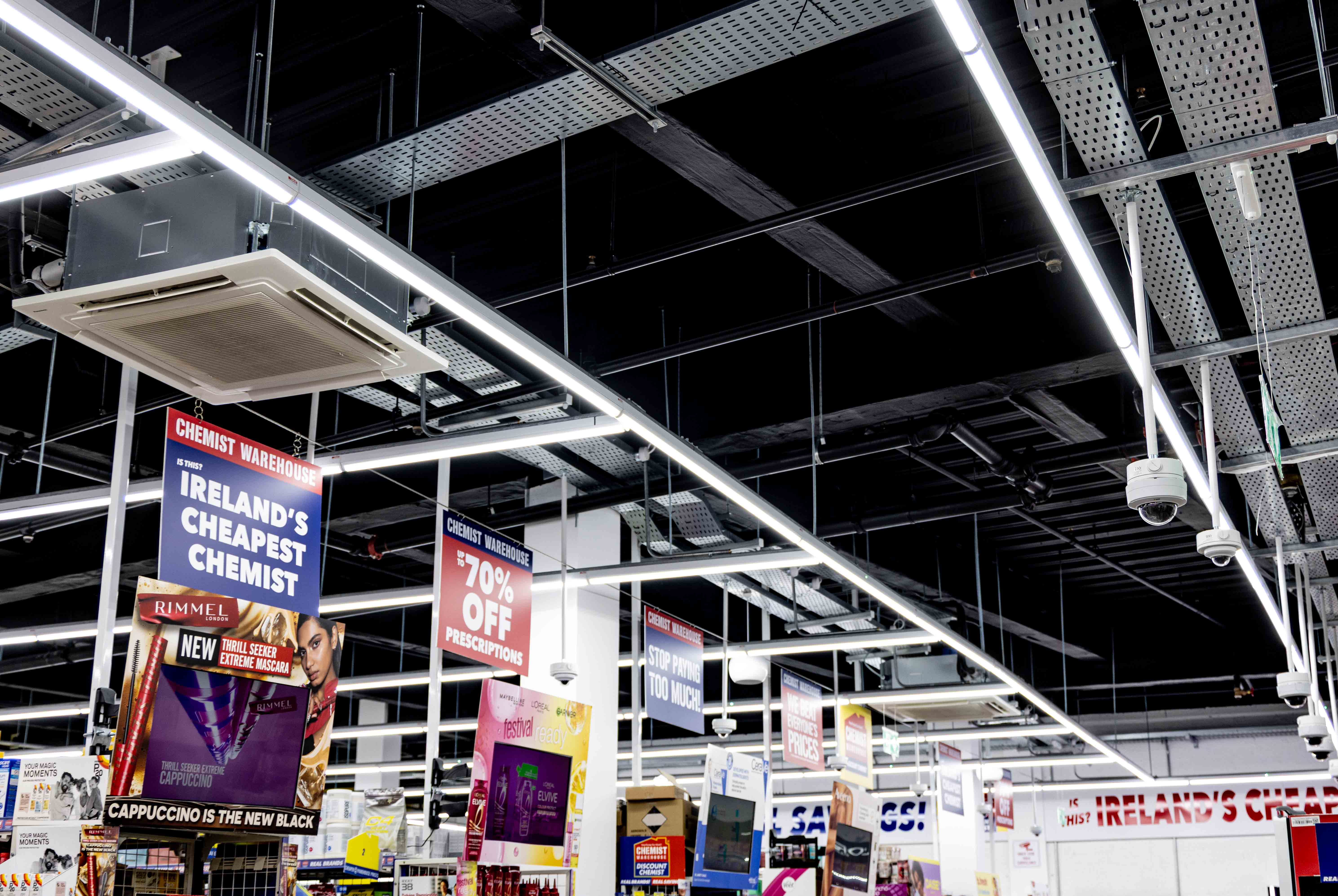 We provided a commercial electrical installation for Chemist Warehouse in Cork City. We completed a precise installation of a custom lighting system that included emergency lighting. All of this was integrated into a central switch system for simplicity of use.